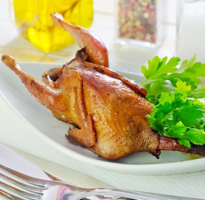 QUAIL (130 G BONELESS)/TOFU (150 G) WITH GREEN BEANS, SPINACH AND MUSHROOMS (150 G) AND QUINOA (60 G)