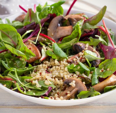 QUINOA (100 G) WITH MUSHROOMS AND ARUGULA (50 G) AND TWO TYPES OF CABBAGE IN TOMATO AND ONION SAUCE (200 G)
