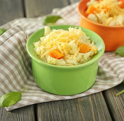 Boil the cereals until tender in slightly salted water. Add grated cheese to the finished porridge.
